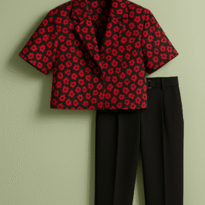– JACQUARD BURGUNDY SHIRT – BLACK STRAIGHT TROUSER – MATCHING BURGUNDY TROUSER – 10 days – Production to shipping